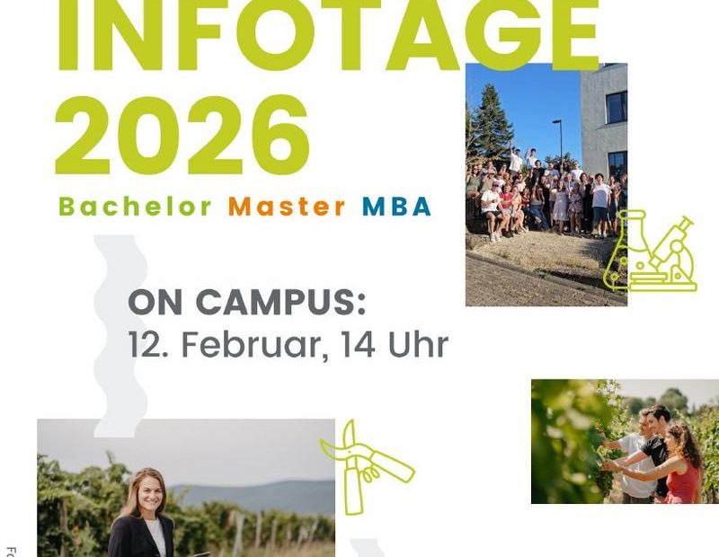 Passt ein Studium am Weincampus zu mir und was erwartet mich?Diese Frage wird am Infotag durch ein vielfältiges Programm „zum Anfassen“ geklärt. Die Studieninteressierten, ihre Familien und Freunde erwartet eine Schnuppervorlesung von Prof. Dr. Ulrich Fischer, eine Informationsbörse sowie ein Rundgang durch die Labore, Hörsäle und dem oenologischen Technikum. Alumni werden von ihrem Berufseinstieg berichten und Tipps für ein erfolgreiches Studium geben. Einblicke in die Weinsensorik wird ein Aromaparcours geben. In individuellen Beratungsgesprächen mit Lehrenden, Kooperationsbetrieben, der Landwirtschaftskammer und Studierenden können sich die Interessierten rund um Studieninhalte, Zulassungsvoraussetzungen und Auslandsaufenthalte informieren.