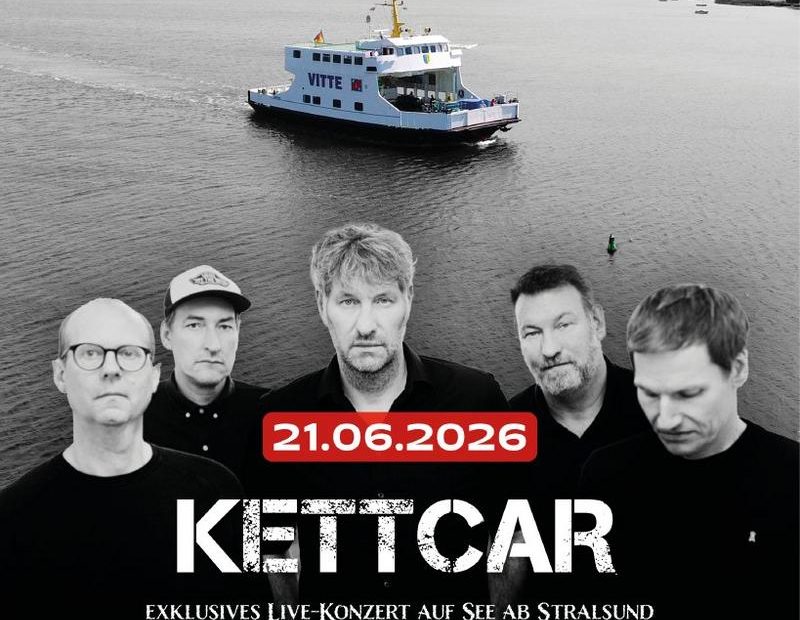 Vor der maritimen Kulisse der Hansestadt Stralsund erwartet die Gäste ein Konzerterlebnis der besonderen Art: Wenn die Motorfähre Vitte den Stadthafen verlässt, verschmelzen Musik, Sommerabend und Seefahrt zu einem einzigartigen Event. Die Nähe zur Band und die besondere Location auf dem Wasser schaffen eine Atmosphäre, die so nur auf See möglich ist. Das Konzert der Band in Stralsund stellt im Jahr 2026 eines von lediglich drei Konzerten dar. Den Fans bietet sich in Stralsund also eine der wenigen Möglichkeiten die Band dieses Jahr live zu sehen. „Wir freuen uns immer über besondere Konzertlocations. Auf der Vitte vor Stralsund zu spielen ist für uns als Band ein echtes Highlight und wir freuen uns eines unserer lediglich drei Konzerte 2026 in einem solch speziellen Rahmen spielen zu können“, sagt Marcus Wiebusch, Sänger der Band Kettcar.