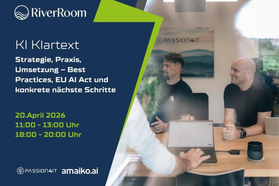 Dazwischen und danach bleibt bewusst Zeit für Fragen, Austausch und Networking im RiverRoom. Du gehst mit mehr Klarheit, konkreten Ideen für deine nächsten Schritte und einem realistischen Bild davon nach Hause, was KI für dich als Führungskraft im Mittelstand leisten kann – und was nicht.