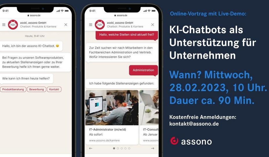 Am 14. März um 10 Uhr haben wir einen Online-Austausch zum Thema „Nutzen von KI-Chatbots für Hochschulen“ geplant. In dem kostenlosen Zoom-Meeting sprechen unsere Chatbot-Experten… Weiterlesen »Live-Demo: Nutzen von KI-Chatbots für Hochschulen (Vortrag | Online)