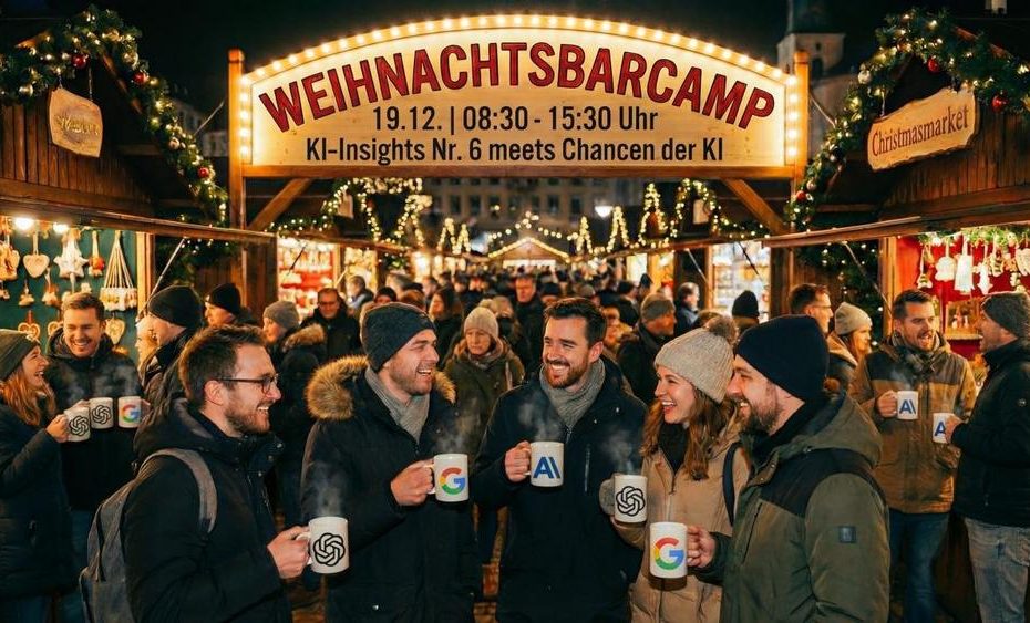 Das Jahr endet. Aber nicht mit einem weiteren KI-Event, bei dem du nur zuhörst. 2025 war das Jahr der KI-Hypes.Jetzt wird’s Zeit, mal wirklich zu… Weiterlesen »Online – Weihnachts Barcamp – KI-Insights Nr. 6 meets Chancen der KI (Workshop | Online)