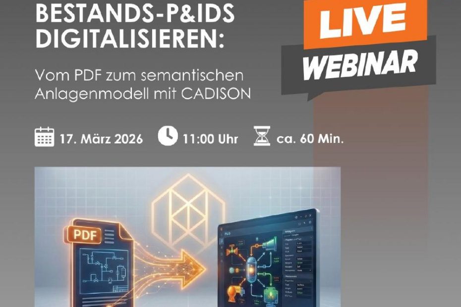 Rohrleitungs- und Instrumentierungsfließbilder (P&ID bzw. R&I) gehören zu den wichtigsten Dokumenten in der Anlagenplanung. Mit zunehmender Digitalisierung entwickeln sie sich jedoch von statischen Zeichnungen zu… Weiterlesen »Optimierte P&ID-Arbeitsweise: Mehr Effizienz und Datenqualität mit CADISON (Webinar | Online)
