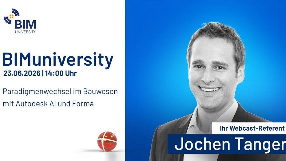 Vom klassischen CAD-Werkzeug zum integrierten Bestandteil moderner BIM-Prozesse AutoCAD® gilt seit Jahrzehnten als etabliertes Planungswerkzeug. Doch wie lässt sich AutoCAD im Kontext von BIM, Teamarbeit, IFC-Austausch… Weiterlesen »BIMuniversity 2026: Vortrag „BIM mit AutoCAD. Geht das überhaupt?“ (Webinar | Online)