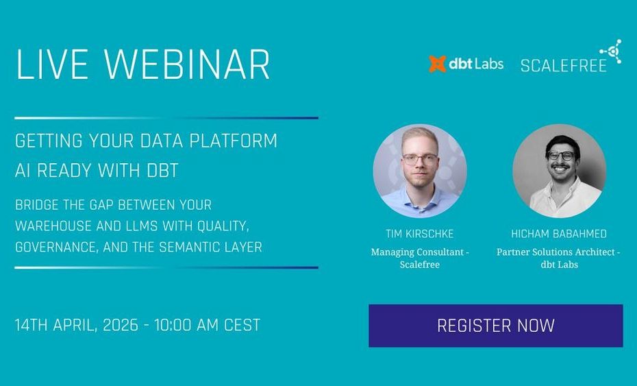 Transform your data workflows for the AI era. Join dbt Labs and Scalefree to learn how to build a high-performance foundation for AI innovation. As… Weiterlesen »Getting Your Data Platform AI Ready with dbt (Webinar | Online)