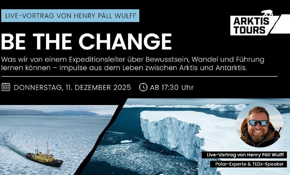 Arktis Tours LIVE Explorer Talk: „BE THE CHANGE“Was wir von einem Expeditionsleiter über Bewusstsein, Wandel und Führung lernen können –Impulse aus dem Leben zwischen Arktis &… Weiterlesen »Arktis Tours LIVE Explorer Talk „BE THE CHANGE“ (Vortrag | Kempten (Allgäu))