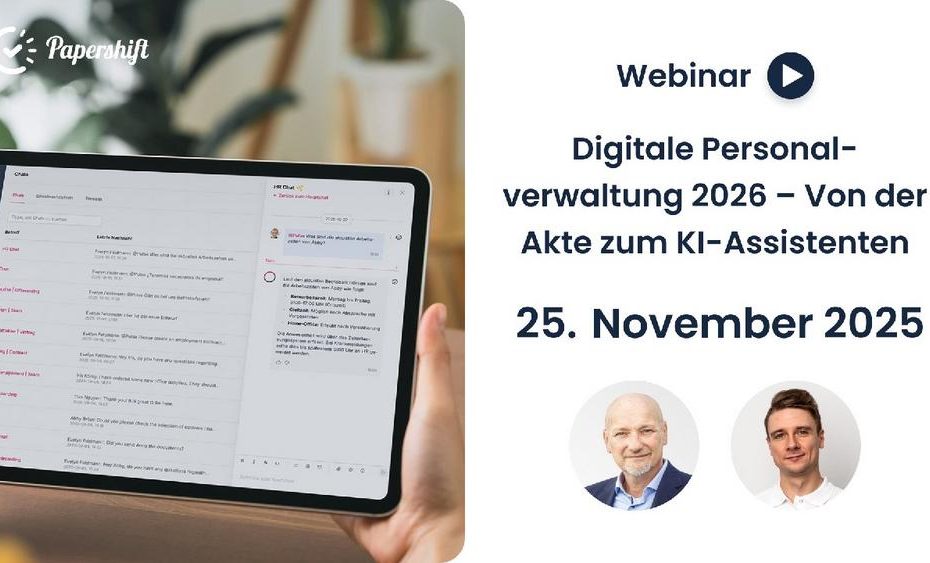 Wie digitale Prozesse und KI die Personalverwaltung verändern – und warum jetzt der richtige Zeitpunkt zum Handeln ist Die Personalverwaltung steht 2026 vor einem Wendepunkt:… Weiterlesen »Webinar: Digitale Personalverwaltung 2026 – Von der Akte zum KI-Assistenten (Webinar | Online)