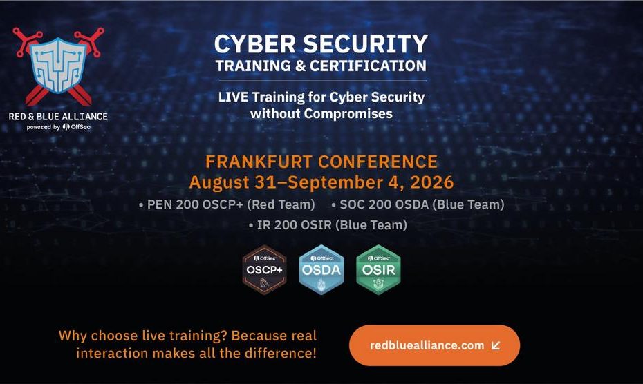 Die Red & Blue Alliance steht für erstklassige Live Cyber Security Trainings, anspruchsvolle Zertifizierungen und praxisnahe Lerninhalte. Teilnehmende profitieren von intensiven Live-Simulationen, realistischen Szenarien und… Weiterlesen »Red & Blue Alliance Conference Frankfurt (Konferenz | Frankfurt am Main)